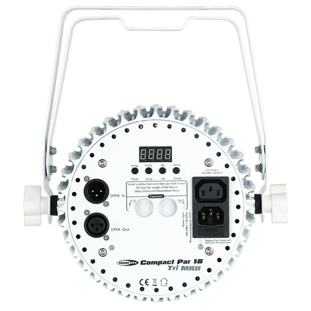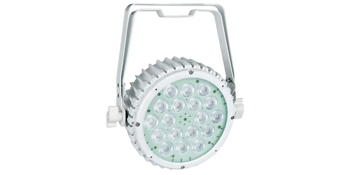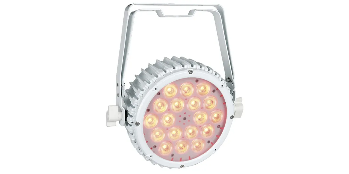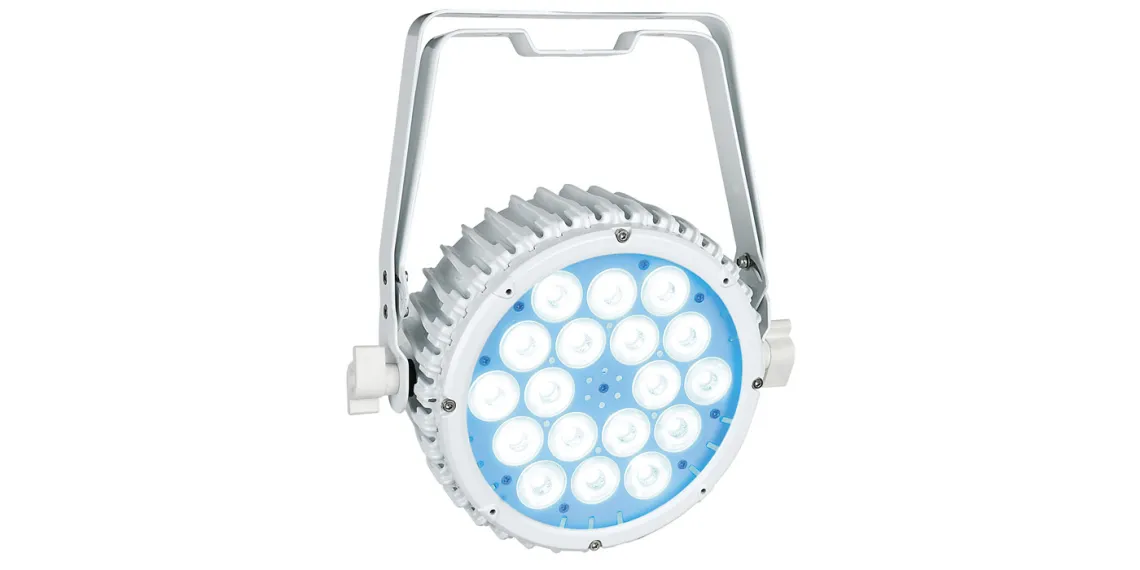Die Compact PAR 18 MKII ist mit einer doppelten Halterung für die einfache Positionierung am Boden ausgestattet und lässt sich problemlos mit bis zu 15 Geräten verbinden. Ihr Design passt in jede Umgebung mit entweder schwarzem oder weißem Gehäuse.