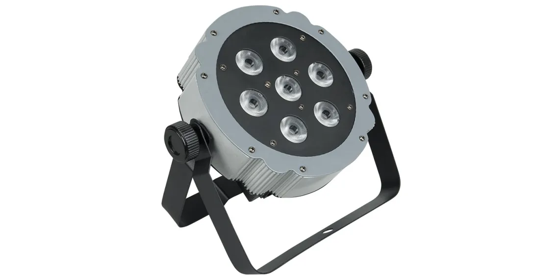 Die Showtec Compact Par 7 Q4 ist eine kompakte 7 x 4 Watt RGBW-LED-PAR mit doppelter Halterung für eine einfache Bodenpositionierung, geeignet für Indoor-Veranstaltungen. Sie hat einen festen Abstrahlwinkel von 15° und verfügt über 0-100 % Dimmer und 0-20 Hz Strobe-Effekte, die sich perfekt für Short-Throw-Farbmischungen eignen.