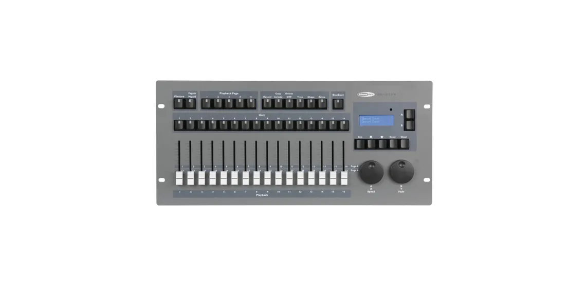Der SM-16/FX hat eine geringe Größe, bietet aber jedem Bediener große Funktionalität. Er kann bis zu 16 Scheinwerfer steuern, die jeweils bis zu 32 Kanäle haben können. 2 Rotoren sorgen für die präzise Positionierung Ihrer Schwenk- und Neigeachse. Robuste Kirschtasten ermöglichen einen reibungslosen und professionellen Betrieb. Der SM-16/2 FX kann bis zu 80 Lauflichter mit jeweils 100 Schritten und 80 Szenen aufnehmen. Darüber hinaus enthält er eine einsatzbereite Shape-Engine, die ihn zum leistungsstärksten Controller seiner Liga macht.