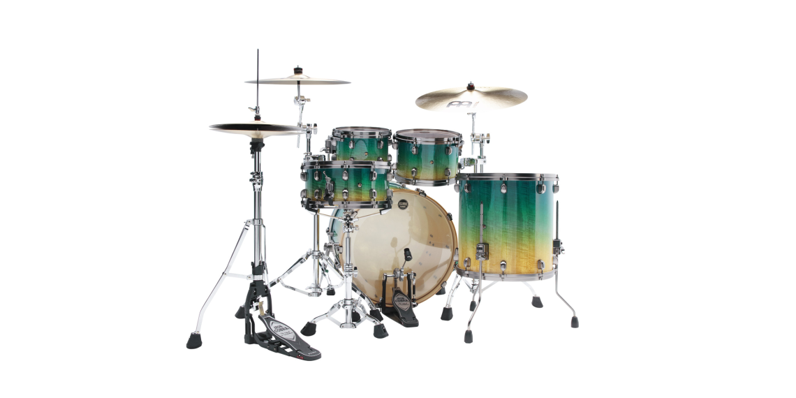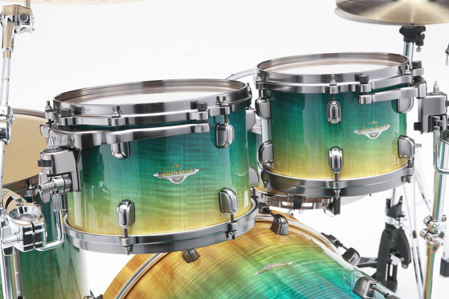 - Kesselmaterial: Ahorn (TT/FT 6-lagig, 5 mm | Bass Drum 8-lagig, 7 mm)