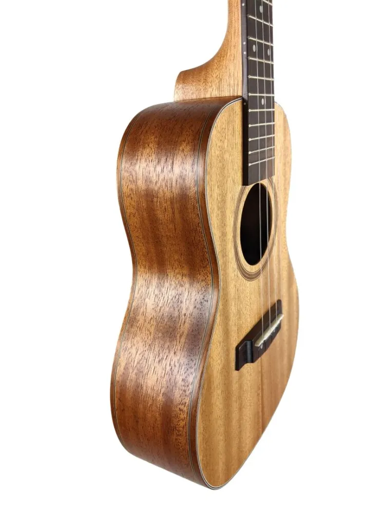 - Griffbrett & Steg: Palisander mit Perleinlage